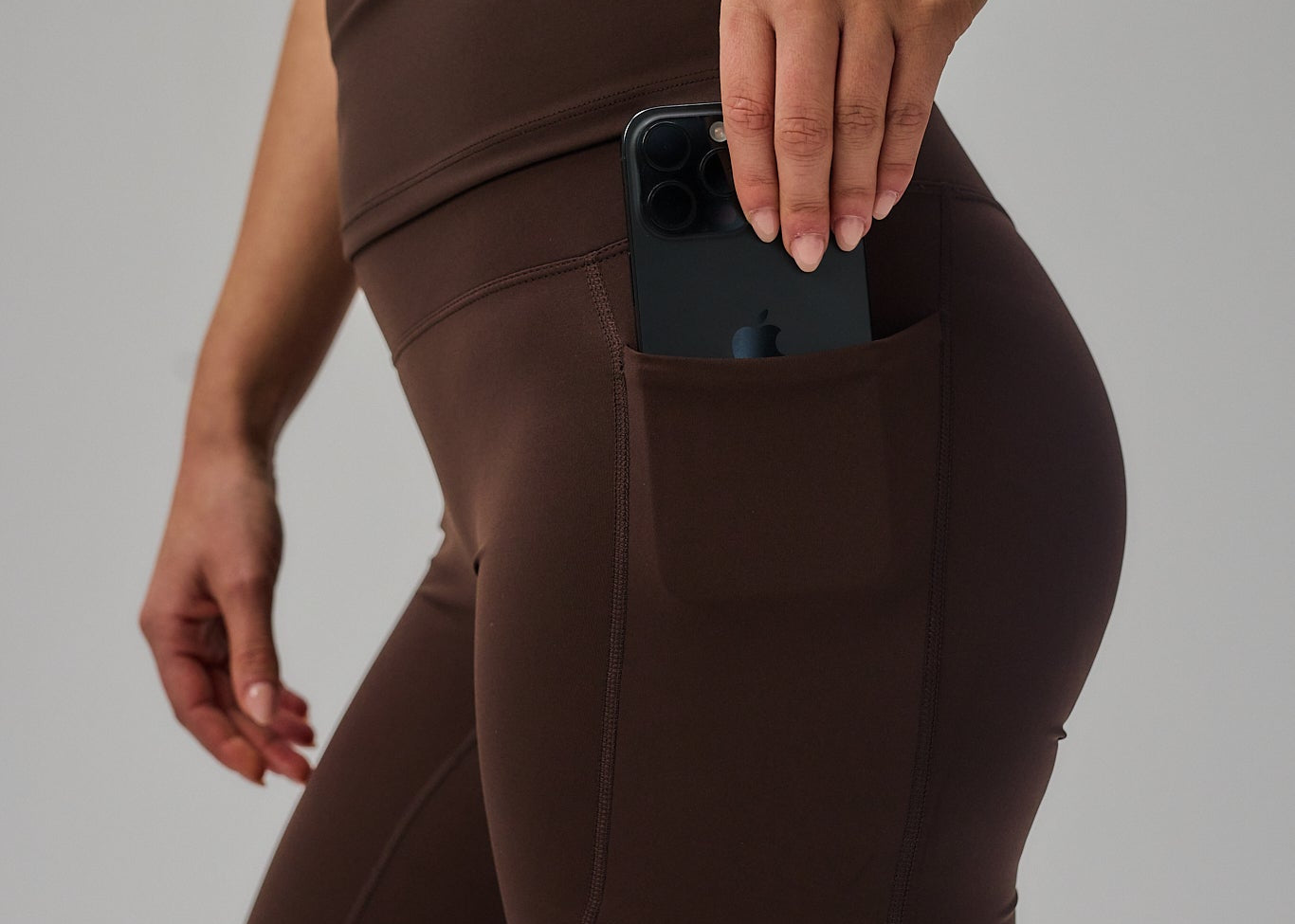 Deep, secure pockets in leggings and shorts for carrying essentials.