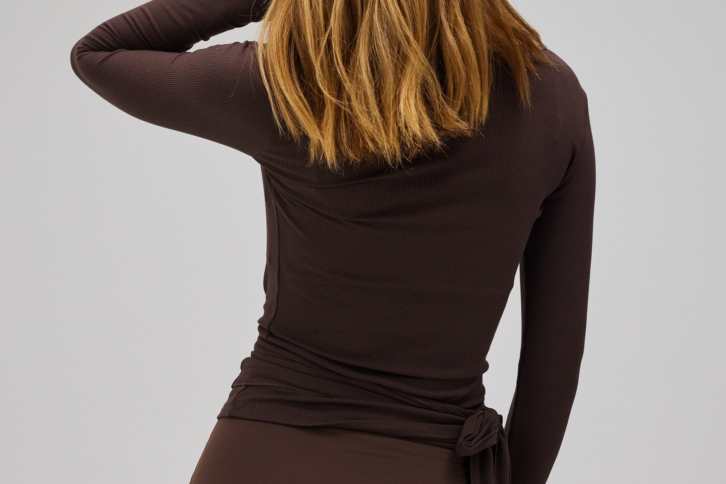 Rib Ballet Wrap Blouse - Pecan Brown