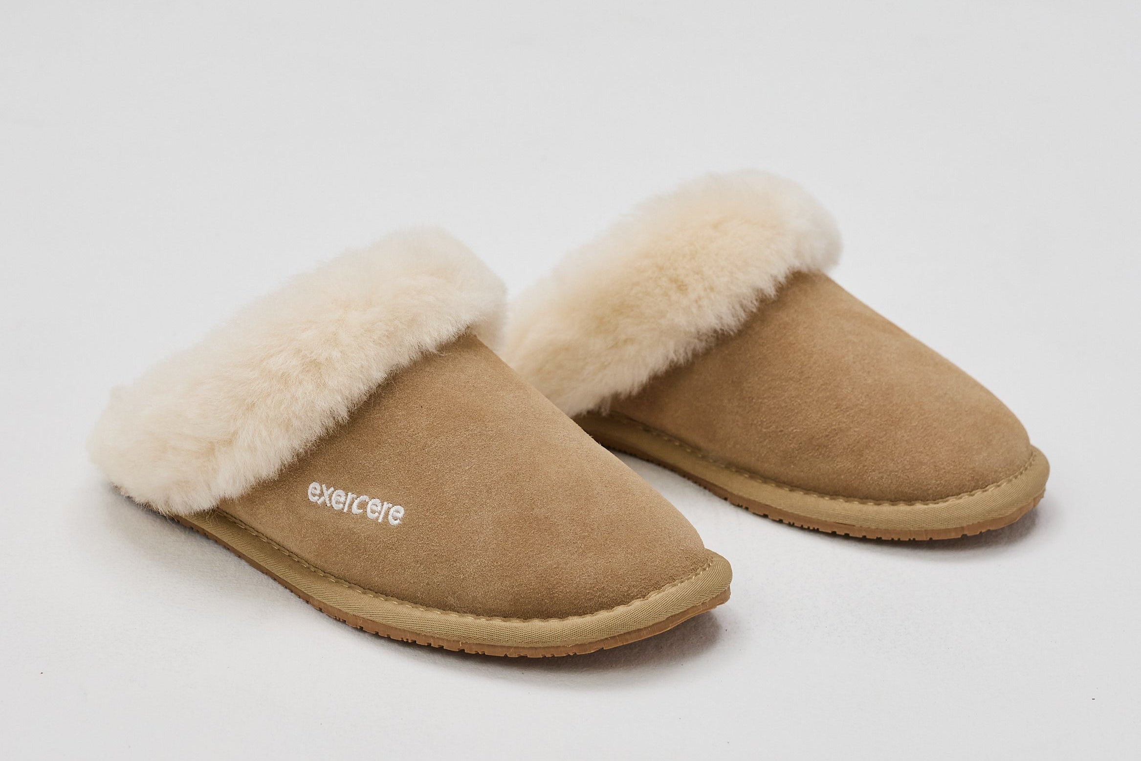 Suede Slippers combine classic simplicity with comfort and a timeless expression. Crafted from soft suede with a rounded toe, flat sole, and the Exercere logo subtly embossed on the side, the design is elevated by its clean and understated details.